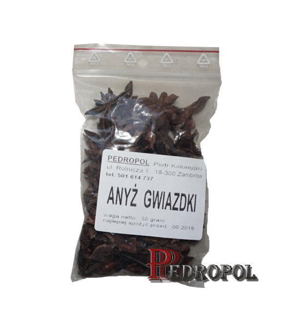 Owoc anyżu gwiaździstego (Anisi stellati fructus) – wysuszony, brunatny owoc złożony o zawartości nie mniej niż 70 ml/kg olejku eterycznego, zawierającego co najmniej 86,0% trans-anetolu. Z owoców wyodrębnić można wonny, o nadzwyczaj miłym zapachu, olejek lotny (którego najważniejszym składnikiem jest anetol), ponadto taniny, żywice i cukry.