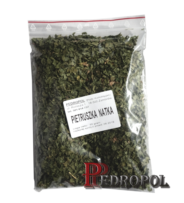 Suszona natka pietruszki to zioło uniwersalne, doskonale pasujące do różnego rodzaju potraw. Używana jest głównie do sosów, zyp, sałat, pasztetów i surówek. Jest niezbędna w każdej kuchni, nie tylko ożywia wygląd przygotowywanych dań, czyniąc je bardziej apetycznymi, ale także wydziela bardzo przyjemną woń.